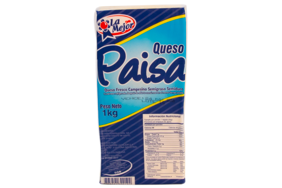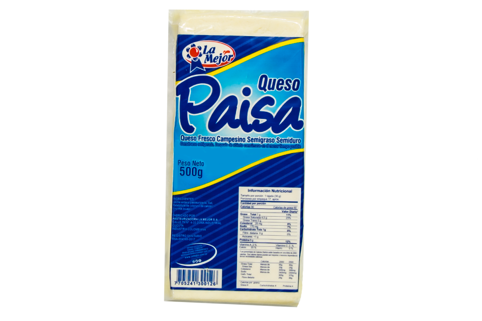 Queso campesino fresco blando con un contenido bajo en grasa, rico en calcio, proteínas, magnesio y fósforo con vitaminas complementarias.